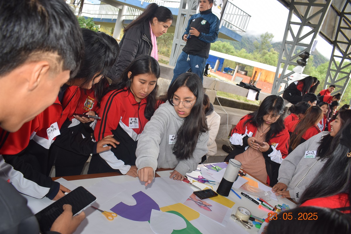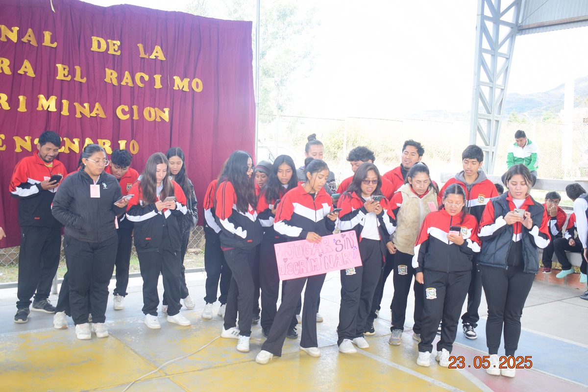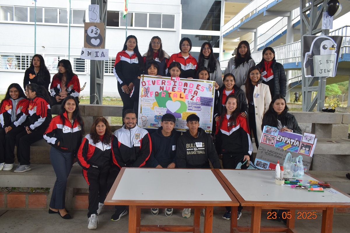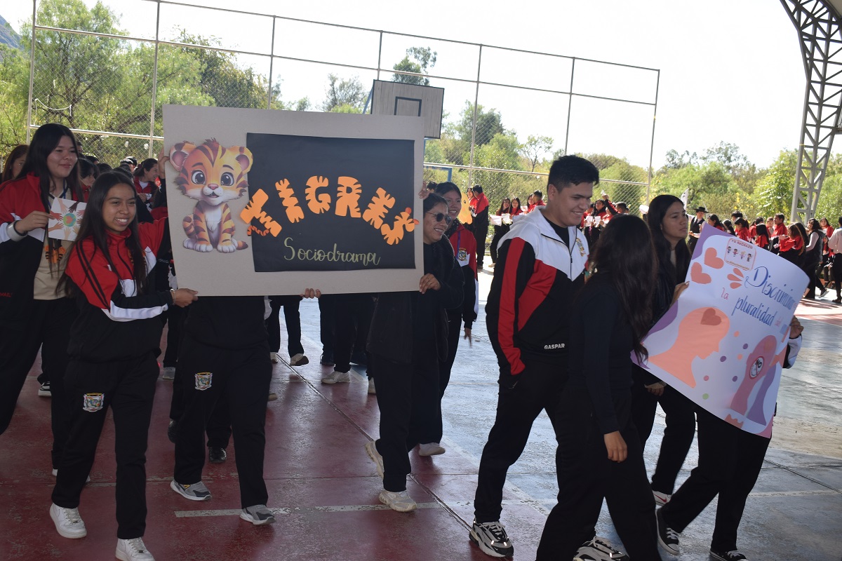 Los estudiantes con las pancartas alusivas a la fecha.