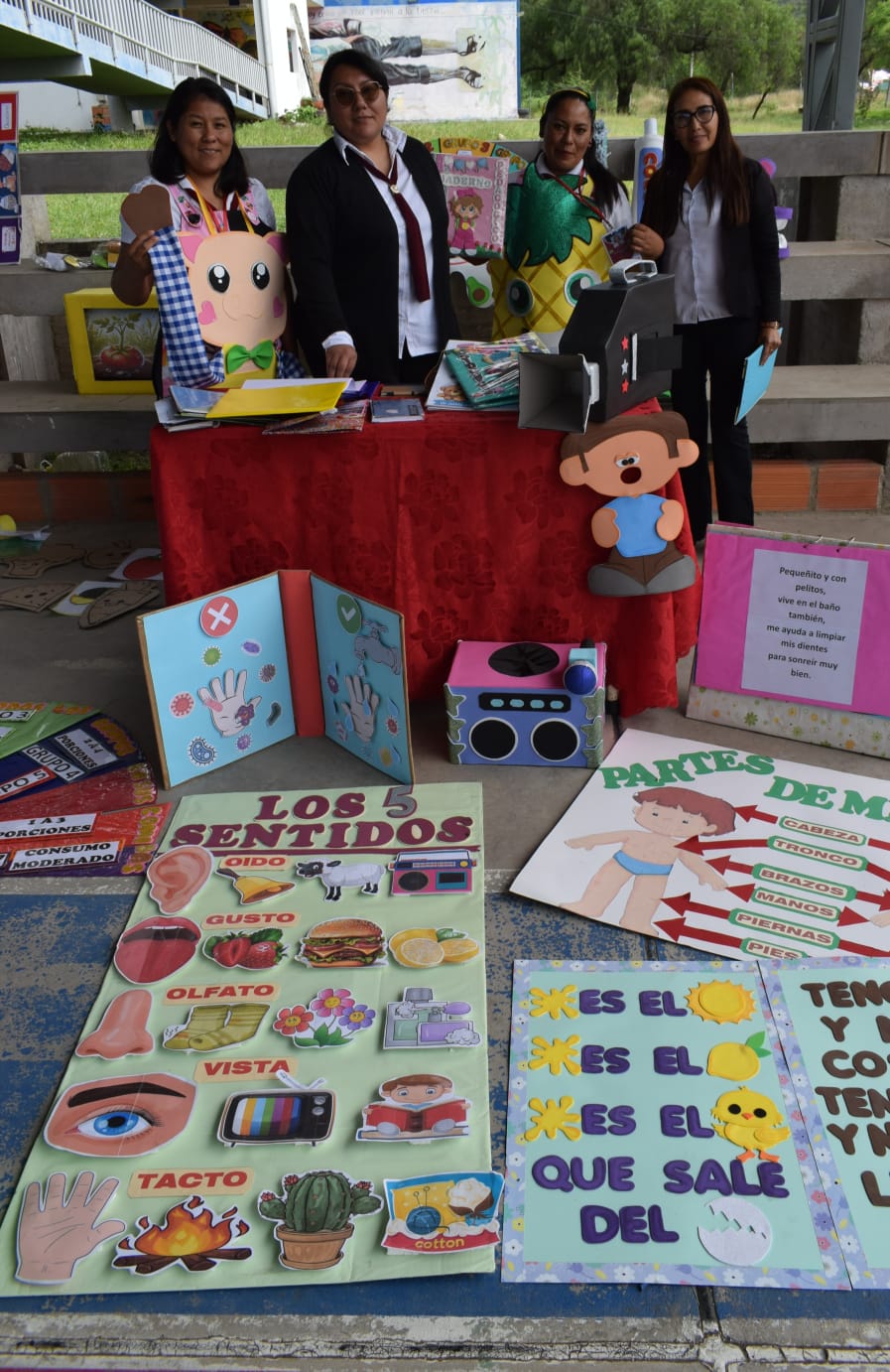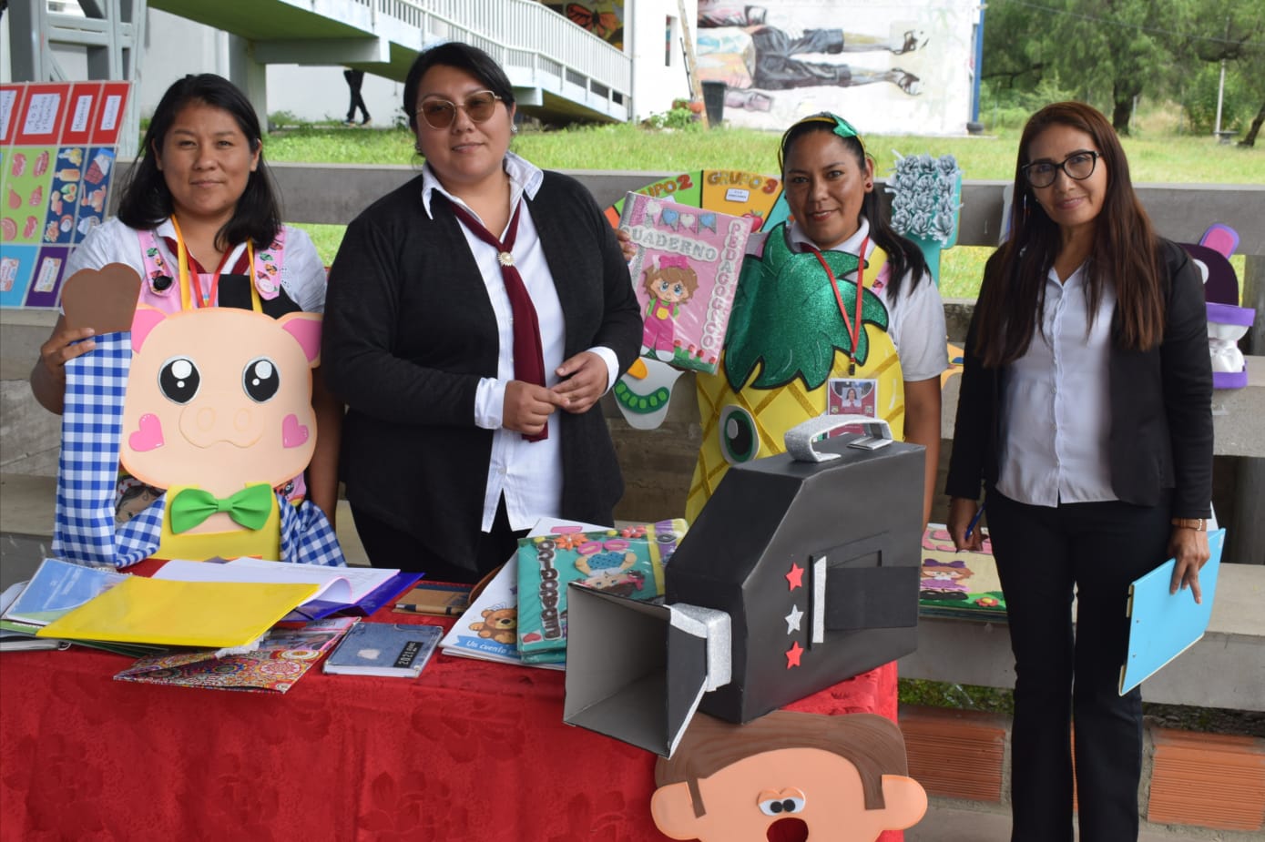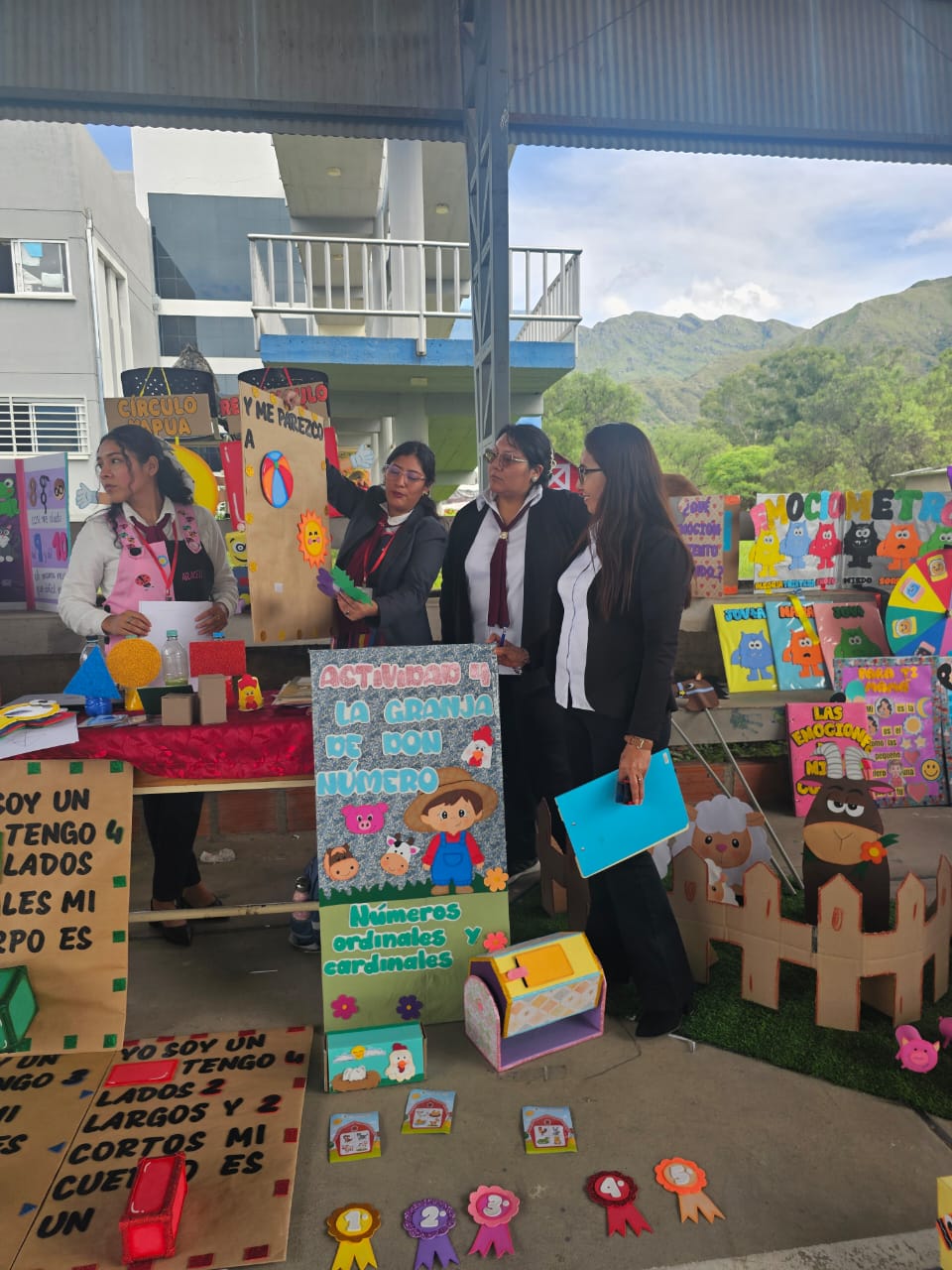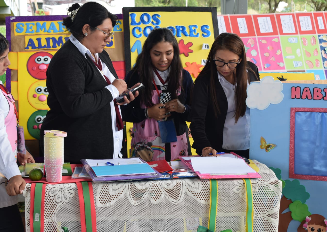 Revisando los stands de los estudiantes.